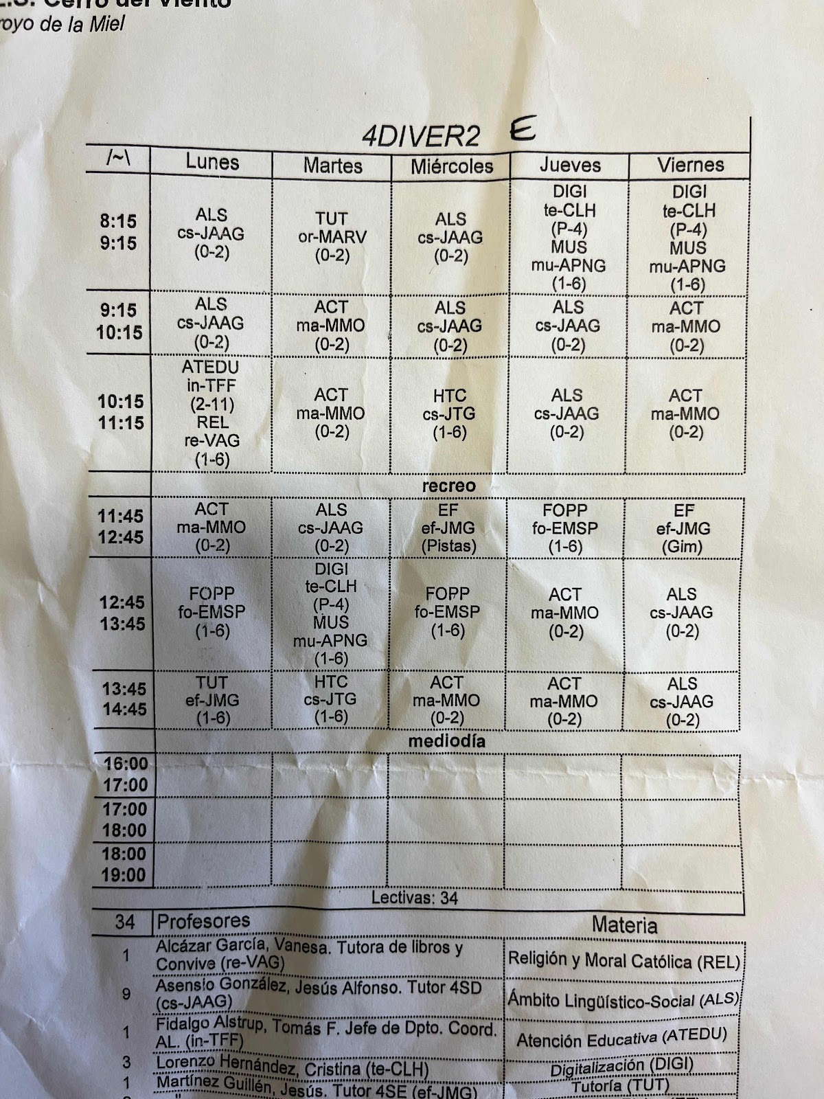 HORARIO 4ºDIVER E