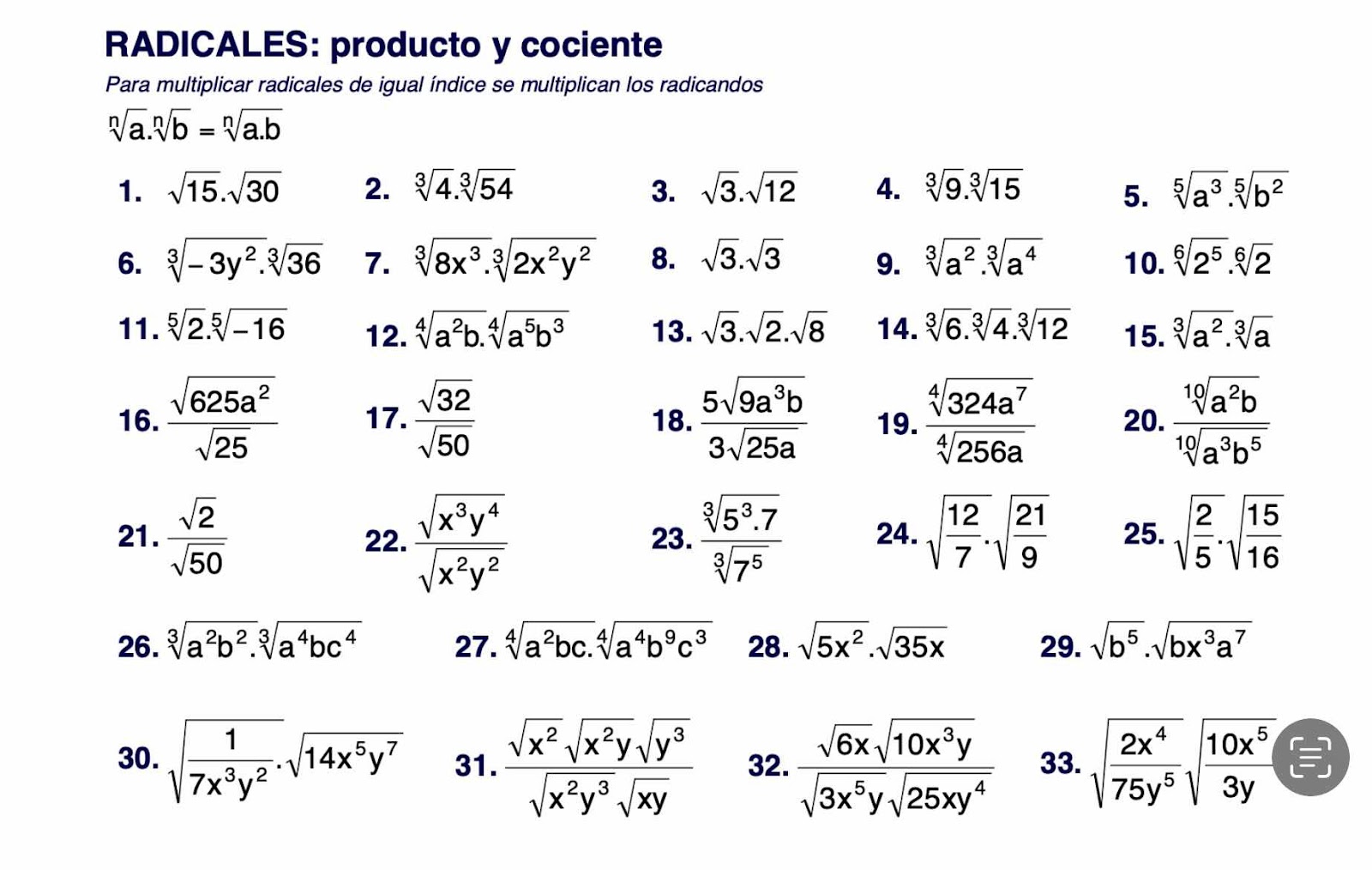 Operaciones con radicales
